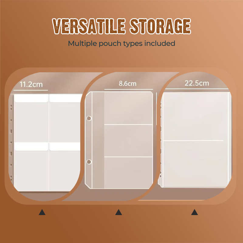 VERSATILE STORAGE OPTIONS FOR EVERY NEED: Includes a variety of storage pouches, secure zipper pockets, and dedicated business card holder pages—allowing you to tailor and adjust your organizer for complete document management.