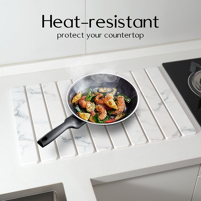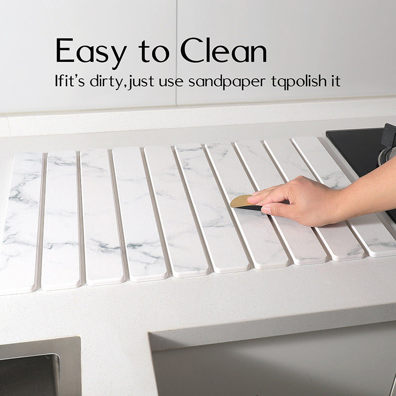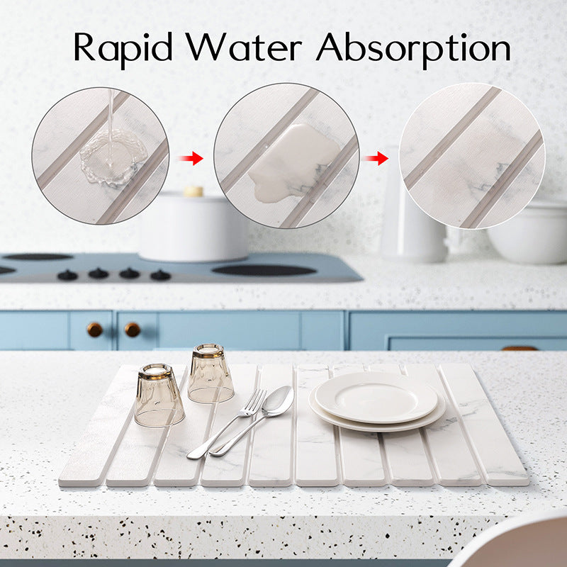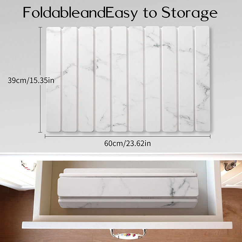 Marble Folding Mat with Diatomaceous Earth Bowl and Plate Drying Kitchen Drain Tray